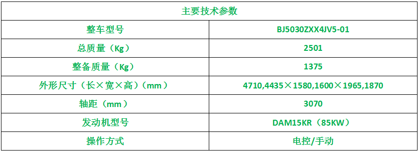 底盘配置:福田祥菱V-1600mm车身,DAM15KR汽油发动机,116马力,3070轴距,5档变速箱,175R14后单胎、1.3T后桥、ABS+EBD、电子助力、前稳定杆、原厂取力器,油刹;