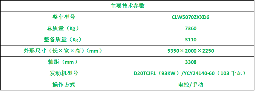 b:东风小多利卡D6驾驶室,YCY24140-60发动机,玉柴140马力(103KW),3308轴距,万里扬6档变速箱,1730单排驾驶室,2T前桥,3.5T后桥,7.00R16钢丝胎,气刹,ABS,空调,电动门窗,中控锁,双层大梁