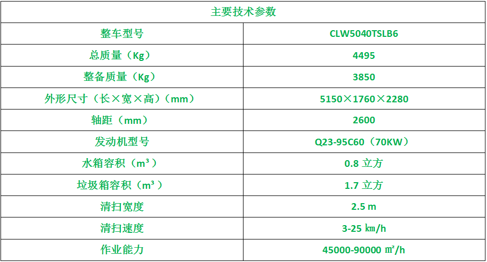 上装配置:中置4扫盘、三洋马达、云内57马力副发动机、施耐德控制开关、海普瑞斯电磁阀组、无级变速自动离合器、免维护离心式风机、不锈钢垃圾箱、上海新西山电子水泵、垃圾箱举升自卸、尾部LED箭头灯、手动泵应急系统;