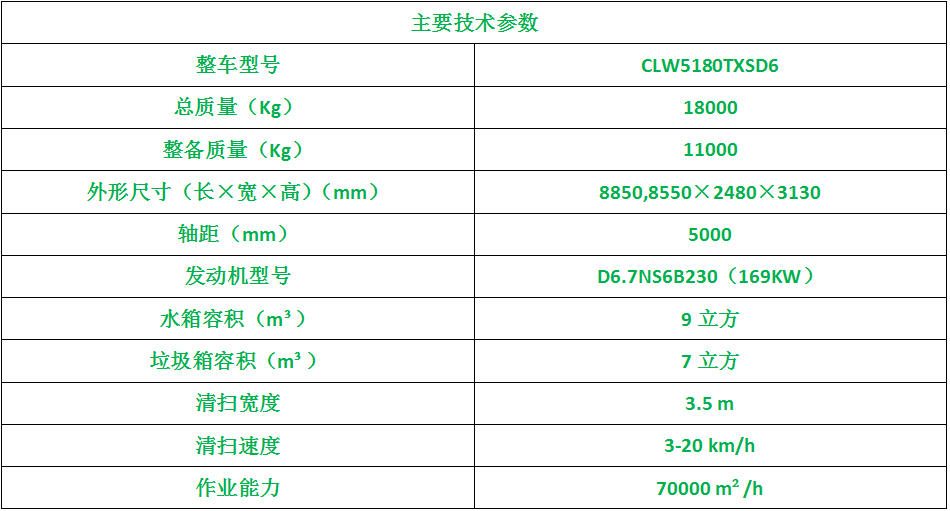 上装配置:带2个中置扫盘;中置超宽吸嘴;双层吸尘筒;康明斯170马力副发动机;台湾液压阀;大力马达;德国品孚高压水泵(前冲/侧喷/中喷/后喷雾)/侧冲洗水枪/垃圾箱自洁装置);万向高压路沿清洗;威龙低压泵(气动前冲后洒);气动球阀控制;不锈钢水箱;4mm不锈钢垃圾箱;德国控制器;尾部箭头灯;机油、垃圾箱、水箱均带防溢或低位报警装置;倒车及洗扫状态室内监视器;多种语音提示;倒车自动保护、防倾倒垃圾翻车保护、检修安全保护;20m高压冲洗卷盘;刷臂转动机构使用德国进口高新耐磨工程隔套,免打黄油;精密冷弯无缝液压油管;CAN总线运动控制器一键电脑控制,多达16条的语音提示或报警。洗扫宽度3.5m;吸入粒度φ110mm。