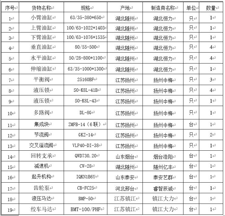 6、主要液压元件清单