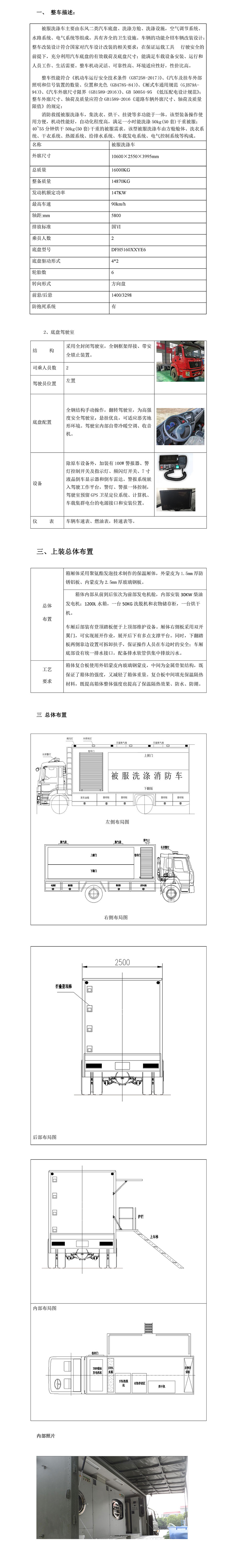 被服洗涤车功能介绍:消防救援被服洗涤车,集洗衣、烘干、挂烫等多功能于一体。该型装备操作使用方便,机动性能好,自动化程度高,满足一小时能洗涤50kg(50套)干重被服;40~55分钟烘干50kg(50套)干重的被服需求。该型被服洗涤车由方舱舱体、洗衣系统、干衣系统、热源系统、给排水系统、车载发电系统、电气**系统等构成。