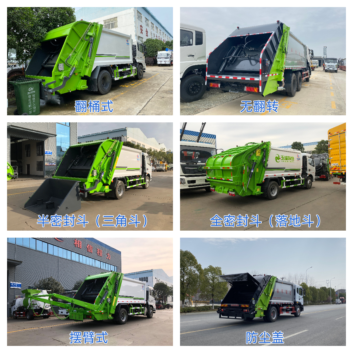 上装配置:箱体厚度采用边5个厚、底5个厚的优质碳钢板生产,全箱体满焊,箱体为联体式,外接电源工作,翻转进料,带压缩推板,后部带锁紧门,带污水收集箱,带室内操作系统,也可以室外双操作,做到驾驶室内和尾部外都可以操作,非常实用,尾部带密封橡胶垫,可防污水滴漏二次污染。
