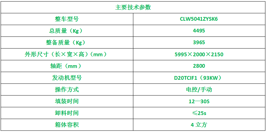 上装配置:箱体厚度采用边4个厚、底4个厚的优质碳钢板生产,全箱体满焊,箱体为联体式,外接电源工作,翻转进料,带压缩推板,后部带锁紧门,带污水收集箱,带室内操作系统,也可以室外双操作,做到驾驶室内和尾部外都可以操作,非常实用,尾部带密封橡胶垫,可防污水滴漏二次污染。