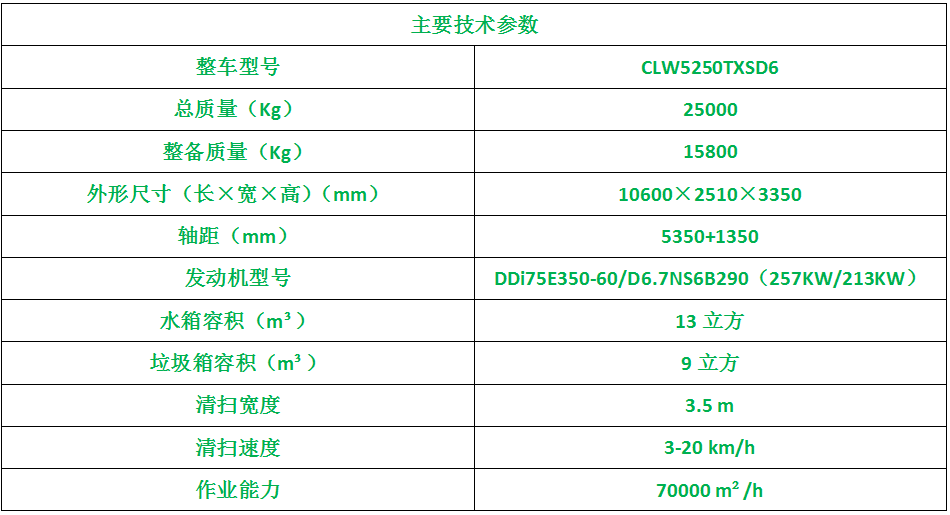 上装配置:带2个中置扫盘;中置超宽吸嘴;双层吸尘筒;康明斯170马力副发动机;台湾液压阀;大力马达;德国品孚高压水泵(前冲/侧喷/中喷/后喷雾)/侧冲洗水枪/垃圾箱自洁装置);万向高压路沿清洗;威龙低压泵(气动前冲后洒);气动球阀控制;不锈钢水箱;4mm不锈钢垃圾箱;德国控制器;尾部箭头灯;机油、垃圾箱、水箱均带防溢或低位报警装置;倒车及洗扫状态室内监视器;多种语音提示;倒车自动保护、防倾倒垃圾翻车保护、检修安全保护;20m高压冲洗卷盘;刷臂转动机构使用德国进口高新耐磨工程隔套,免打黄油;精密冷弯无缝液压油管;CAN总线运动控制器一键电脑控制,多达16条的语音提示或报警。洗扫宽度3.5m;吸入粒度φ110mm。